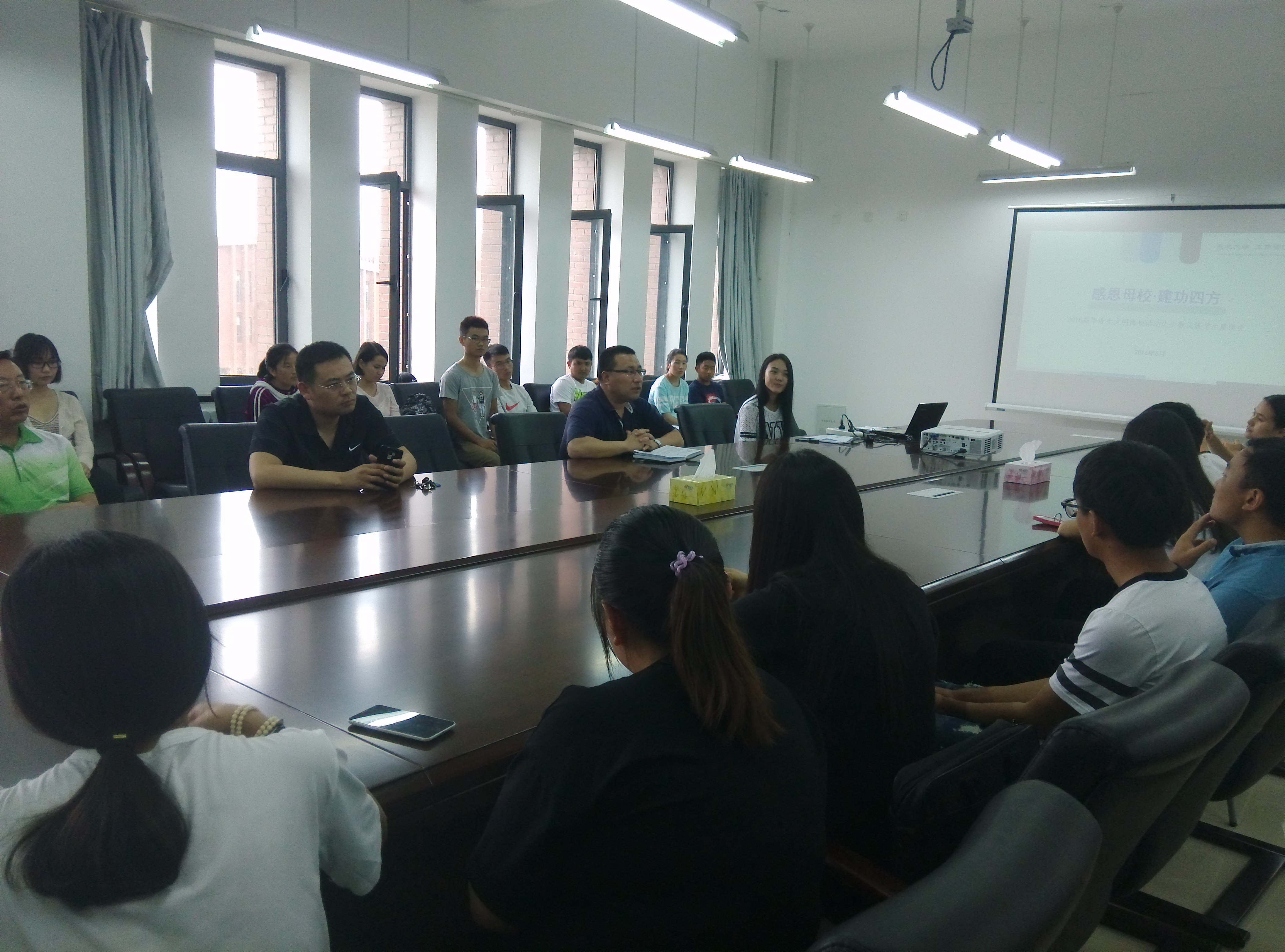 6月14日中午,乐动体育官网 召开“感恩母校 建功四方”2016届毕业生文明离校活动之少数民族学生座谈会。乐动体育官网 党委副书记兼副院长严立宁、学办主任王寰、分团委书记杨光、学生干事李斌以及2016届毕业生辅导员宋静出席座谈会。