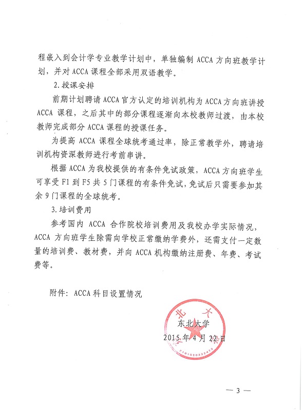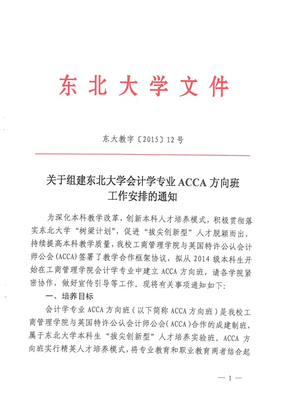 附件:《关于组建东北大学会计学专业ACCA方向班的通知》(东大教字[2015]12号文件)