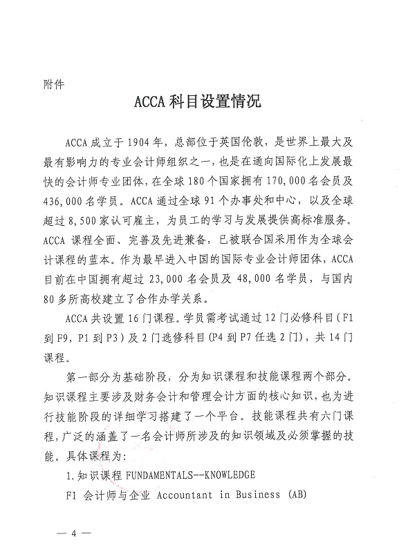 (四)会计学专业ACCA方向班属于东北大学本科生“拔尖创新型”人才培养实验班,关于ACCA方向班的相关介绍请参见附件“《关于组建东北大学会计学专业ACCA方向班的通知》(东大教字[2015]12号文件)”。具体情况请向乐动体育官网 会计学专业ACCA方向课程项目郭老师咨询,电话:83687685,13644070691。