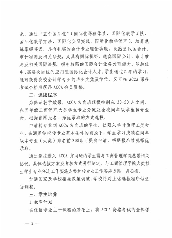 (二)乐动体育官网 本科生转专业坚持宽出严进的工作方针。乐动体育 不接收第二志愿学生,不接收任何类型的学籍异动学生,不接收小语种学生;转入会计学专业的学生均进入ACCA方向班,且需第一时间与乐动体育官网 签署相关协议;已转专业的学生不得再次转专业或回原专业。