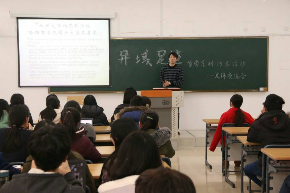 12月5日13:00,由乐动体育官网 学生工作办公室举办的“异域足迹”留学系列沙龙活动第一期——名师交流会在文管学馆b112顺利举行。此次交流会邀请乐动体育官网 国际经济与贸易系安岗老师主讲,辅导员石天老师参加。
