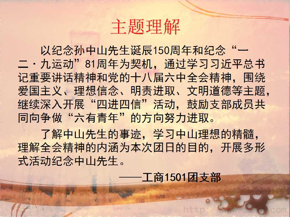 【精品团日】赓续中山理想,学习全会精神——工商1501