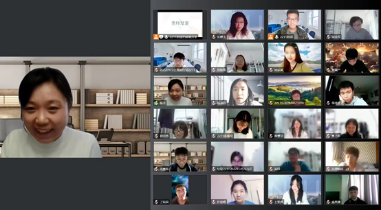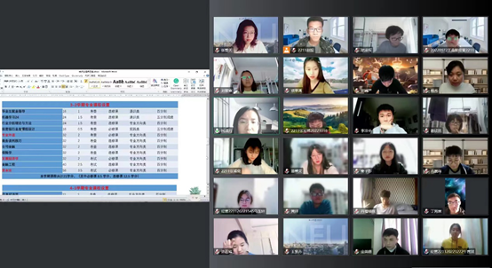 首先,班级临时负责人介绍班级总体情况,并邀请同学们依次进行自我介绍,同学们围绕爱好特长、家乡、对大学生活的感受以及对未来的展望等多个方面进行介绍。真挚幽默的话语让热情透过屏幕,拉近新生间的距离,滋润每个人的心田。