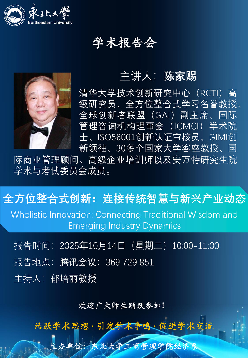 邀请清华大学技术创新研究中心名誉教授陈家赐学术报告